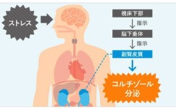 ◎コルチゾール :副腎皮質から分泌される、生命維持に欠かせないホルモンです。分泌は早朝が最も多く、夜中が最も少ないです。ストレスを感じると、身を守ろうと急激に増えることから、ストレスホルモンともよばれています。