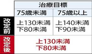 新版では、年齢や合併症にかかわらず、一律で診察室血圧130/80mmHg未満を推奨しています。